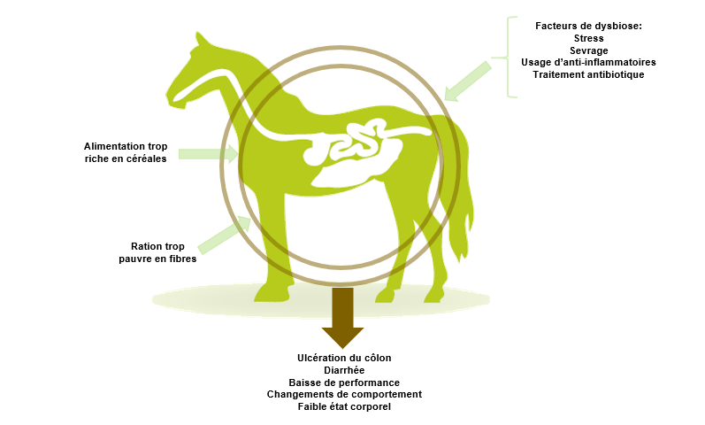 Une perturbation de l’équilibre de la flore digestive est souvent causée par un déficit en bactéries bénéfiques et une multiplication excessive des bactéries à potentiel pathogène. Ce phénomène est appelé une dysbiose.